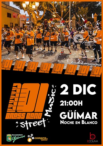 Se acerca el mes de diciembre, y en el municipio de Güímar ya preparan la Noche en Blanco, una puesta de largo con actividades culturales y de ocio que dinamizan y colorean de música sus calles y zonas comerciales. Dando este color estarán los chicos de la 101 Brass Band, que llevarán su divertido pasacalle a esta Noche en Blanco güimarera.